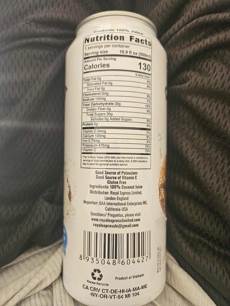 Diamond Coconut Water (16.9 FL OZ) per can.